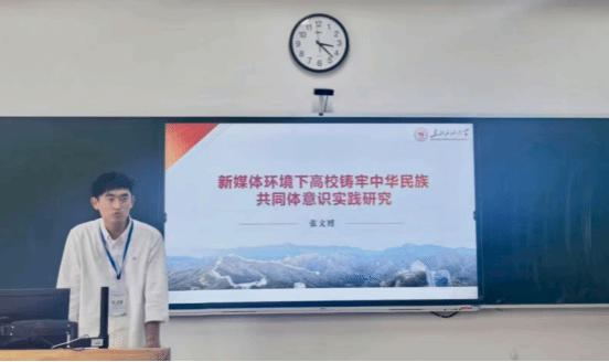 在第三分论坛上,白雪做《高校铸牢中华民族共同体意识教育五维路径探析》主题报告,胡蓥蓥做《黑龙江各民族交往交流交融的历史经验与现实启示》主题报告,张文博做《新媒体环境下高校铸牢中华民族共同体意识实践研究》主题报告。