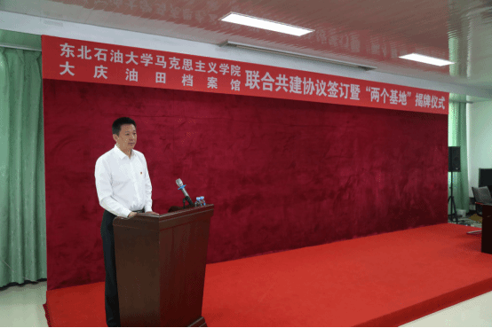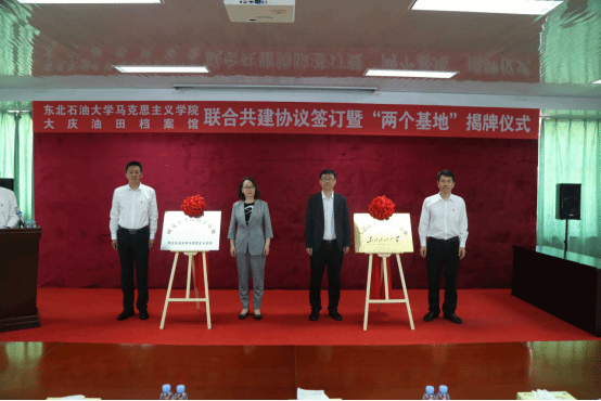 (通讯员 王法睿 记者 胡玉喆)为深入贯彻习近平新时代中国特色社会主义思想,推动东油“行走的思政课”和“场馆里的思政课”走深走实,推进思政小课堂与社会大课堂、企业发展与党建工作深度融合,近日,U8国际官网在大庆油田档案馆举行“联合共建协议签订暨‘两个基地’揭牌仪式”,标志着东油“大思政课实践教学基地”、U8国际官网“研究生实践教学基地”正式落成。