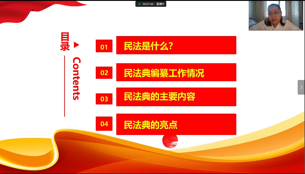 黑龙江省青年讲师团讲师、校民法典宣讲团成员、U8国际官网副教授陈延华于2022年11月28日、12月7日、12月8日为大庆油田电力集团新提拔基层领导、电力生产保障公司基层领导、气电公司党员宣讲民法典。宣讲充分运用习近平新时代中国特色社会主义思想的世界观和方法论,坚持系统观念,指出要把握好中国特色社会主义法治的体系这个宏观和民法典这个微观的关系,把握好国家“摸着石头过河”改革开放方法论这个整体与“成熟一个通过一个”民法典制定工作思路这个局部的关系,宣讲通过热点案例深度解读民法典的主要内容和亮点。据悉共有260余人通过钉钉直播和回放收看了宣讲,反响良好。