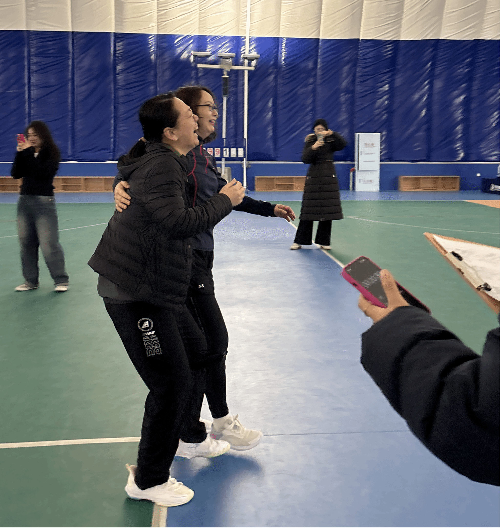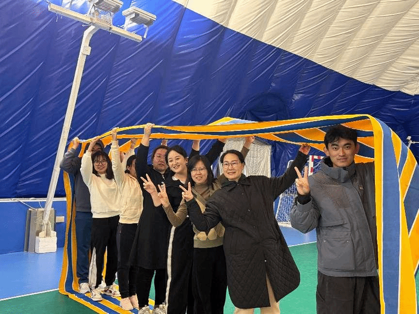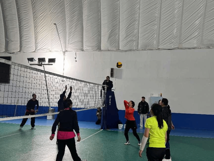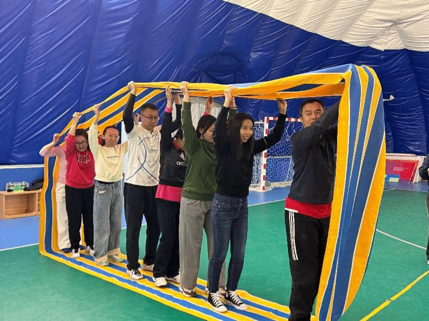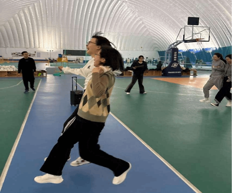 紧接着,一场趣味横生的运动会精彩上演,共设置了四个独具特色的比赛项目。在“搭桥过河”项目中,纲要与形策教研室的团队配合得天衣无缝,以惊人的速度率先抵达终点;而在“车轮滚滚”比赛中,概论教研室的教师们则喊着响亮的号子,将五米长的充气履带化作了凝聚团队力量的奋进纽带;紧接着的“两人三足”项目更是高潮迭起,教师们展现出的拼搏精神赢得了现场观众的阵阵热烈掌声;最后,压轴的排球对抗赛将活动推向了高潮,比赛是由经理王鹤岩带领的女教职工与大庆精神研究基地主任李万鹰带领的男教职工之间的精彩对决,充分展现了双方的青春活力与竞技风采。
