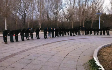 活动现场,师生代表们整齐列队,面容肃穆,心怀无比沉痛和崇敬之情。他们向铁人雕像鞠躬致敬,表达对这位伟大英雄的崇高敬意。